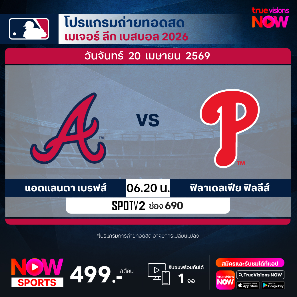 แอตแลนตา เบรฟส์ พบ ฟิลาเดลเฟีย ฟิลลีส์ เวลา 06.20 ทางช่อง SPOTV2 (690)