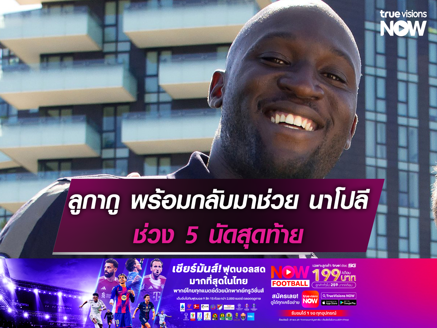 โรเมลู ลูกากู กองหน้าของสโมสรนาโปลี เตรียมกลับมาช่วยต้นสังกัดอีกครั้งในช่วง 5 นัดสุดท้าย หลังก่อนหน้านี้มีประเด็นไม่มารายงานตัวกับสโมสร