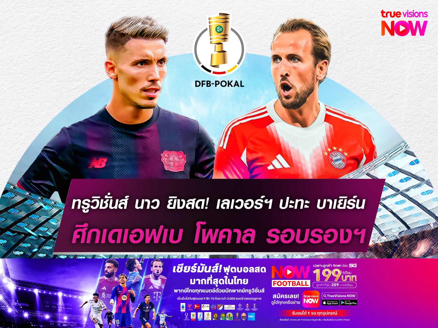 แอปพลิเคชัน ทรูวิชั่นส์ นาว ถ่ายทอดสดศึกเดเอฟเบ โพคาล รอบรองชนะเลิศ ระหว่าง เลเวอร์คูเซ่น ปะทะ บาเยิร์น มิวนิค คืนวันพุธที่ 22 เมษายนนี้ เวลา 01.45 น.