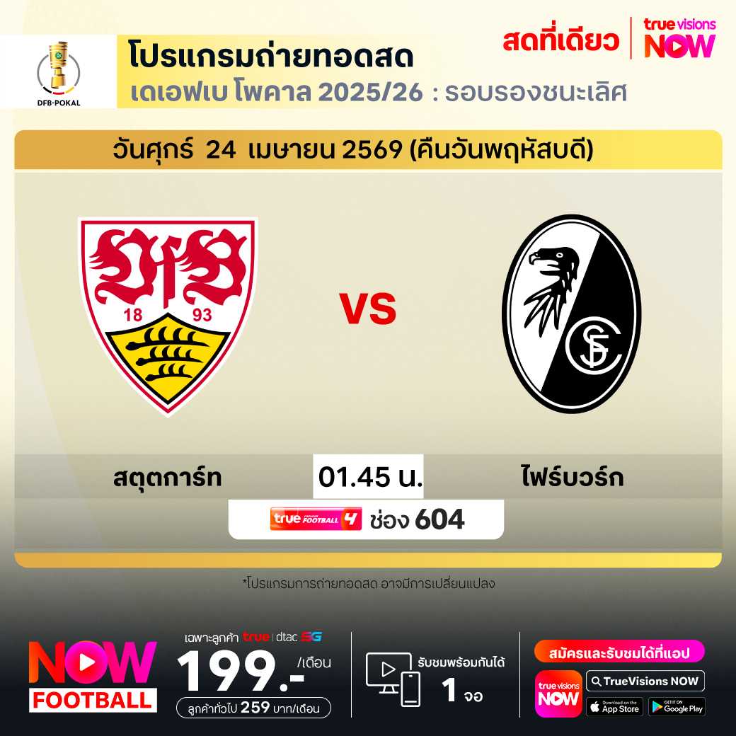 สตุ๊ตการ์ท พบ ไฟร์บวร์ก เวลา 01.45-03.45 ทางช่อง TPF 4 (604)