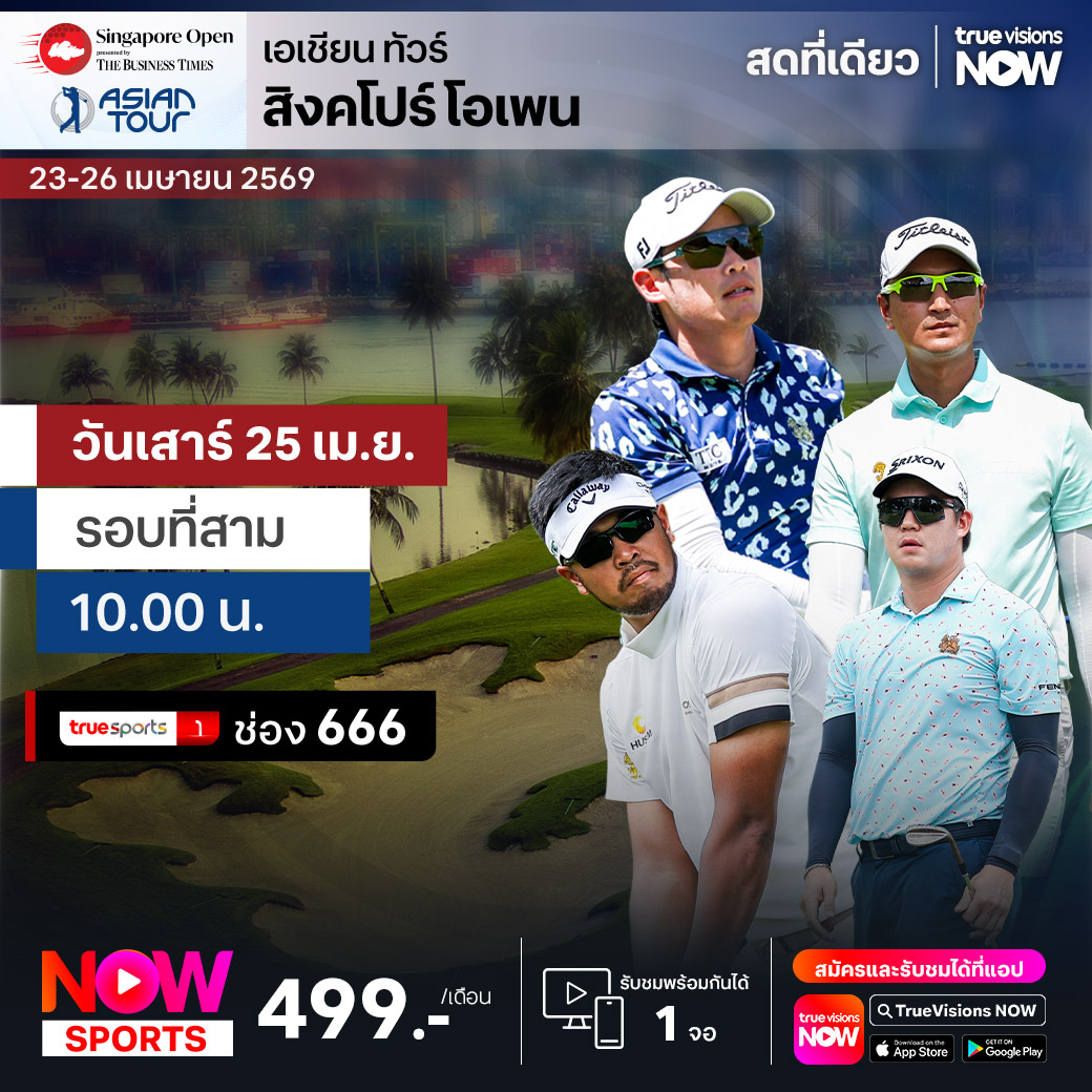 กอล์ฟ เอเชียน ทัวร์ ฤดูกาล 2026 สัปดาห์นี้ นักกอล์ฟชื่อดังจากทั่วทุกมุมโลก มารวมตัวกันเพื่อดวลวงสวิงในรายการ สิงคโปร์ โอเพ่น ที่สนามชื่อดังอย่าง เซนโตซ่า กอล์ฟ คลับ เพื่อชิงโทรฟี่และเงินรางวัลรวม 64 ล้านบาท ร่วมส่งใจเชียร์โปรกอล์ฟไทย ทำสกอร์เบียดแย่งตำแหน่งผู้นำและลุ้นตำแหน่งแชมเปี้ยน ชมสด ครบทุกรอบ ที่ ทรูวิชั่นส์