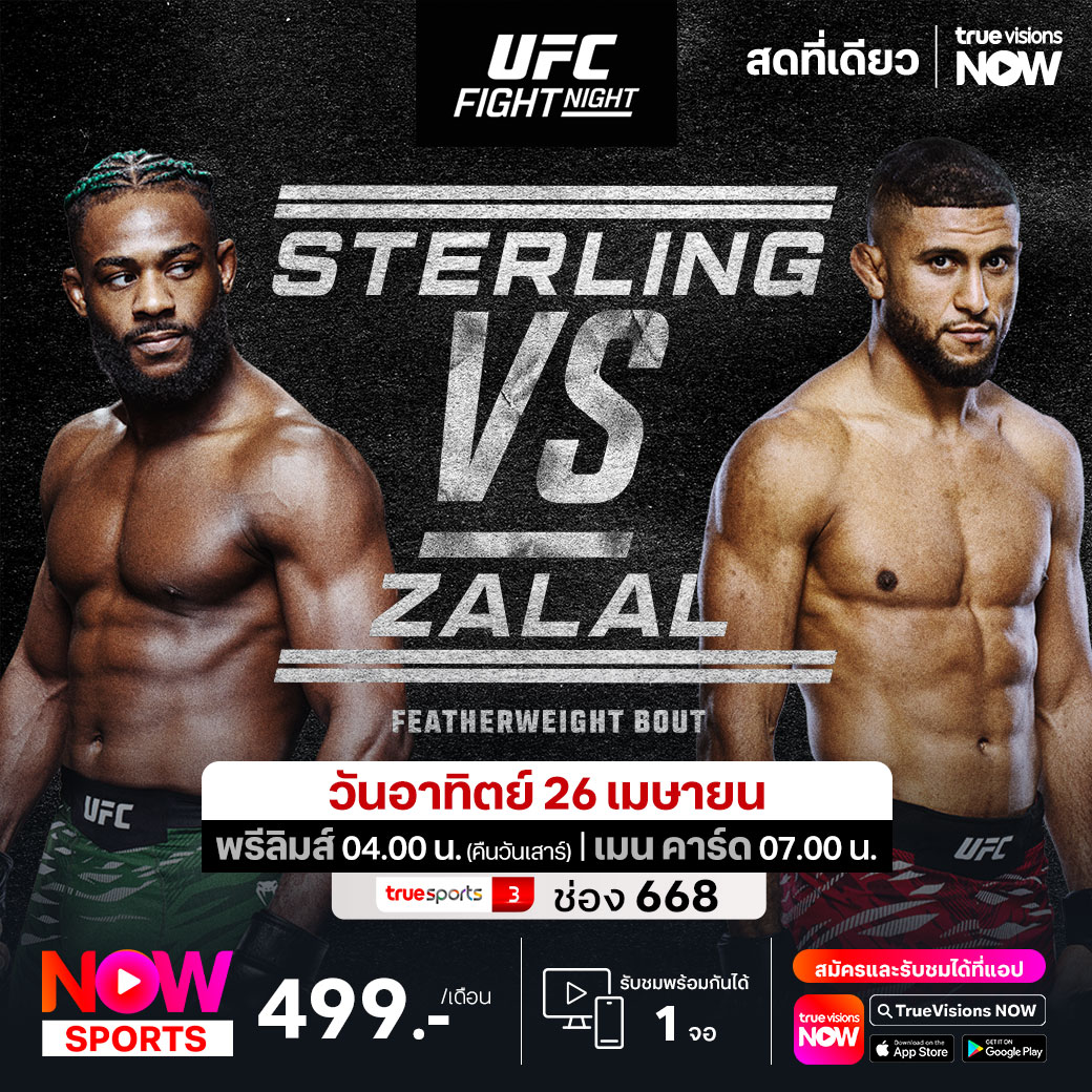 ยูเอฟซี ไฟต์ ไนท์ จัดหนักจัดเต็มเพื่อแฟนๆ สั่งลาเดือนเมษายนกับความดุเดือดเลือดพล่านของนักสู้พันธุ์แกร่งแถวหน้าของวงการ คู่เอก อดีตแชมป์รุ่นเฟเธอร์เวตชาวอเมริกัน อัลเจอเมน สเตอร์ลิ่ง ปะทะ รองแชมป์อันดับ 7 จากโมร็อกโก ยุสเซฟ ซาลาล ร่วมด้วยรุ่นไลต์เวต ราฟา การ์เซีย จากเม็กซิโก พบ อเล็กซานเดอร์ เฮอร์นันเดซ จากสหรัฐ ชมสด เอ็กซ์คลูซีฟ จาก เมต้า เอเพ็กซ์ ลาสเวกัส ที่ ทรูวิชั่นส์