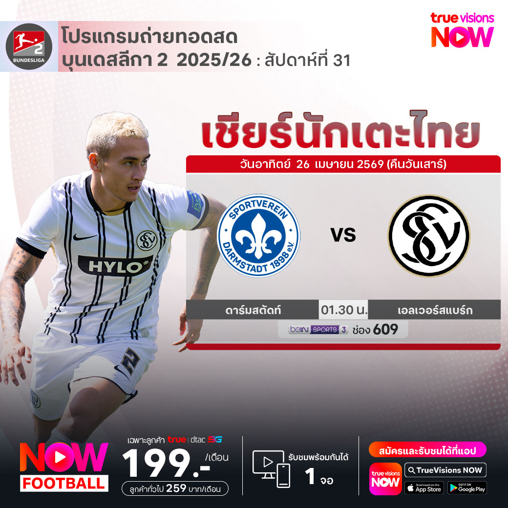 ดาร์มสตัดท์ พบ เอลเวอร์สแบร์ก เวลา 01.30-03.30 ทางช่อง beIN 3 (609)
