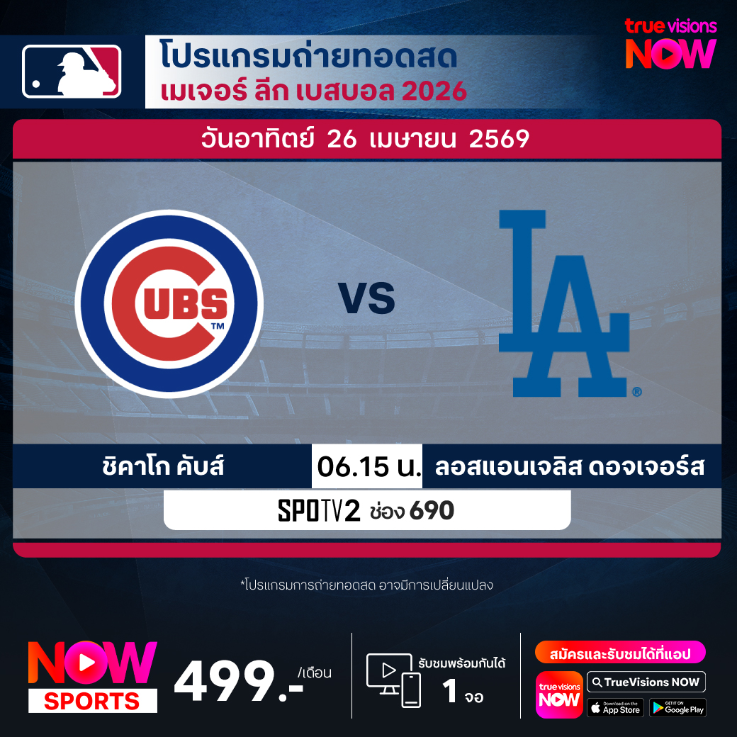 ชิคาโก คับส์ พบ ลอสแอนเจลิส ดอจเจอร์ส เวลา 06.15 ทางช่อง SPOTV2 (690)