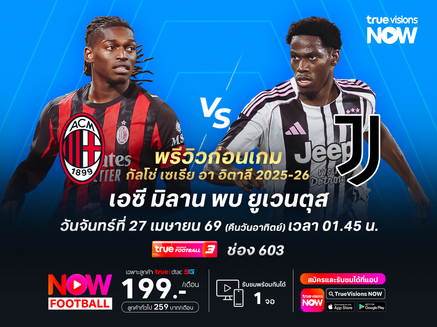 ศึก กัลโช่ เซเรีย อา อิตาลี 2025-26 เอซี มิลาน จะเล่นที่ ซาน ซิโร่ รับการมาเยือนของ ยูเวนตุส โดยเกมนี้ มิลาน เจ้าถิ่น ฟอร์มตกลงไปเยอะในช่วงที่ผ่านมา หลังแพ้ไปถึง 4 จากการลงเล่น 8 เกมหลังสุดในลีก จนทำให้หมดลุ้นแชมป์ไปแบบดื้อๆ ขณะที่ ยูเวนตุส ฟอร์มคงเส้นคงวาอย่างมากในช่วงโค้งสุดท้ายของฤดูกาล หลังไม่แพ้ใครมา 8 เกมติดต่อกันแล้ว และถ้าเกมนี้พวกเขาบุกมาชนะ มิลาน ได้ จะกระโดดขึ้นไปรั้งอันดับที่ 3 ของตารางทันที