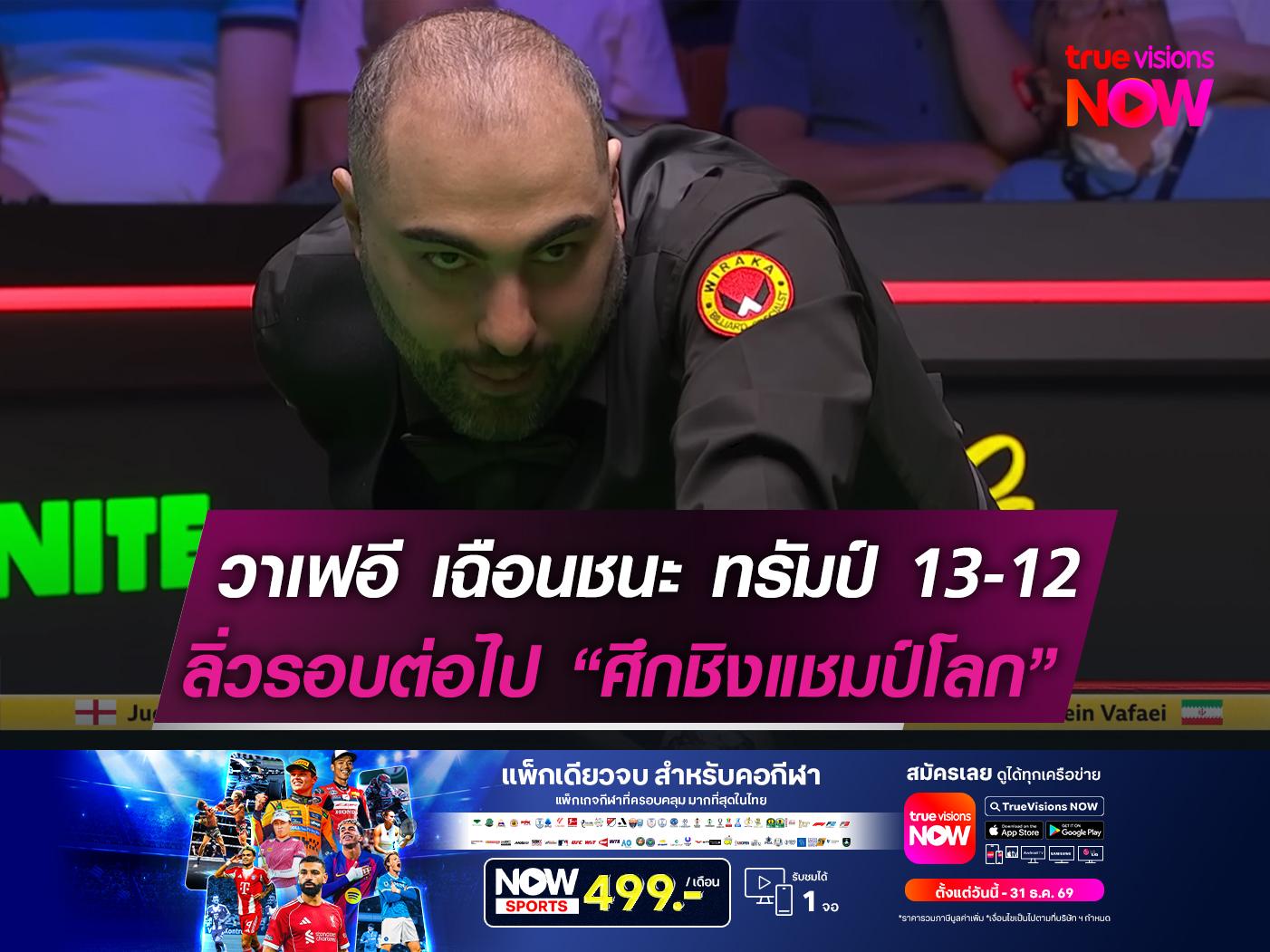 ฮอสเซน วาเฟอี โชว์หัวใจแกร่ง พลิกโค่น จัดด์ ทรัมป์ มือ 1 โลก 13-12 เฟรม ศึกสนุกเกอร์ชิงแชมป์โลกที่ครูซิเบิ้ล สร้างประวัติศาสตร์หน้าใหม่ พร้อมลุ้นแชมป์ต่ออย่างมั่นใจ