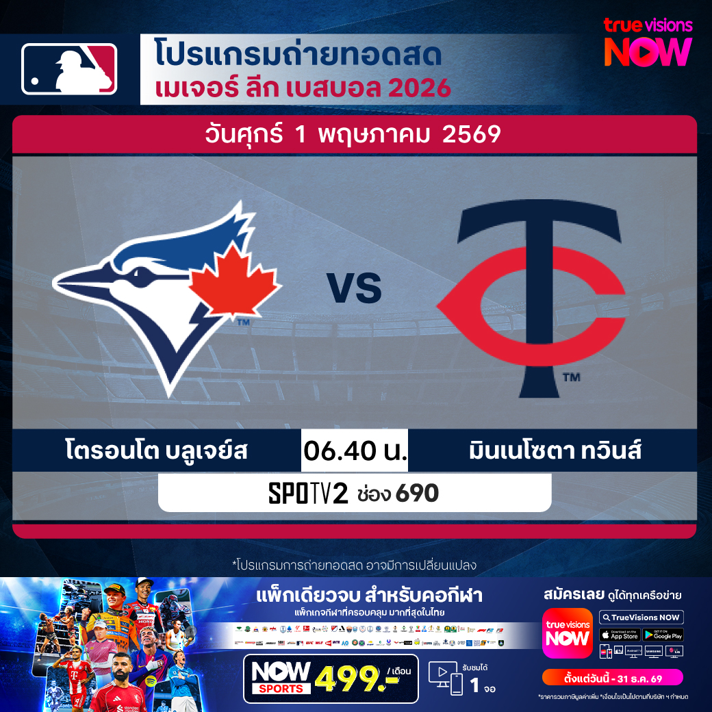 โตรอนโต บลูเจย์ส พบ มินเนโซตา ทวินส์ เวลา 06.40 ทางช่อง SPOTV2 (690)