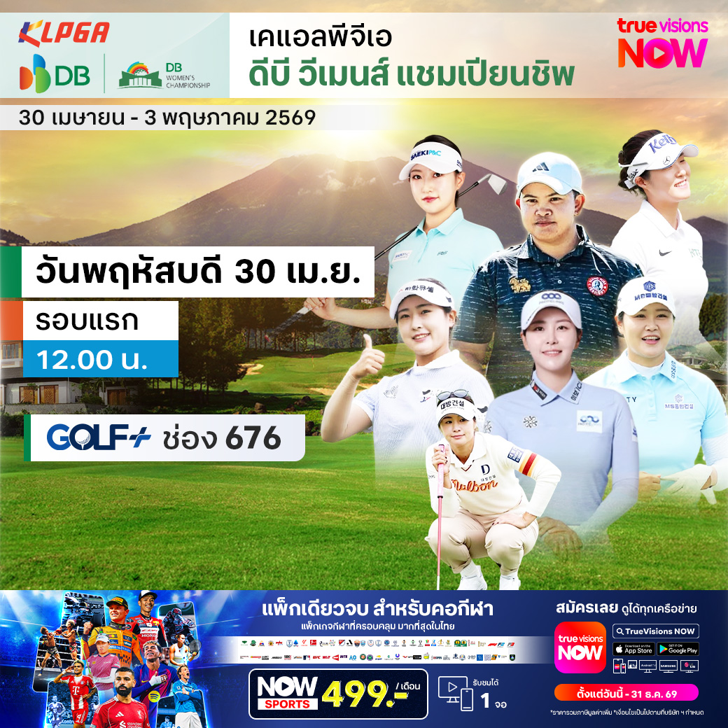 แฟนกอล์ฟหญิงจากเกาหลีใต้ ชมกันต่อในสัปดาห์นี้กับฤดูกาล 2026 ของ เคแอลพีจีเอ ทัวร์ ที่ดวลวงสวิงกันดุเดือดเข้มข้น มาตรฐานสูงตามสไตล์มืออาชีพเบอร์ 1 ของเอเชีย กับรายการ ดีบี วีเมนส์ แชมเปี้ยนชิพ ที่มีการเงินรางวัลรวม 1,200,000,000 วอน ที่สนามเรนโบว์ ฮิลล์ ประเทศเกาหลีใต้ ร่วมลุ้นกันว่าใครจะก้าวขึ้นมาเป็นแชมป์คนใหม่ในปีนี้ ชมสด ครบทุกรอบ ที่ ทรูวิชั่นส์