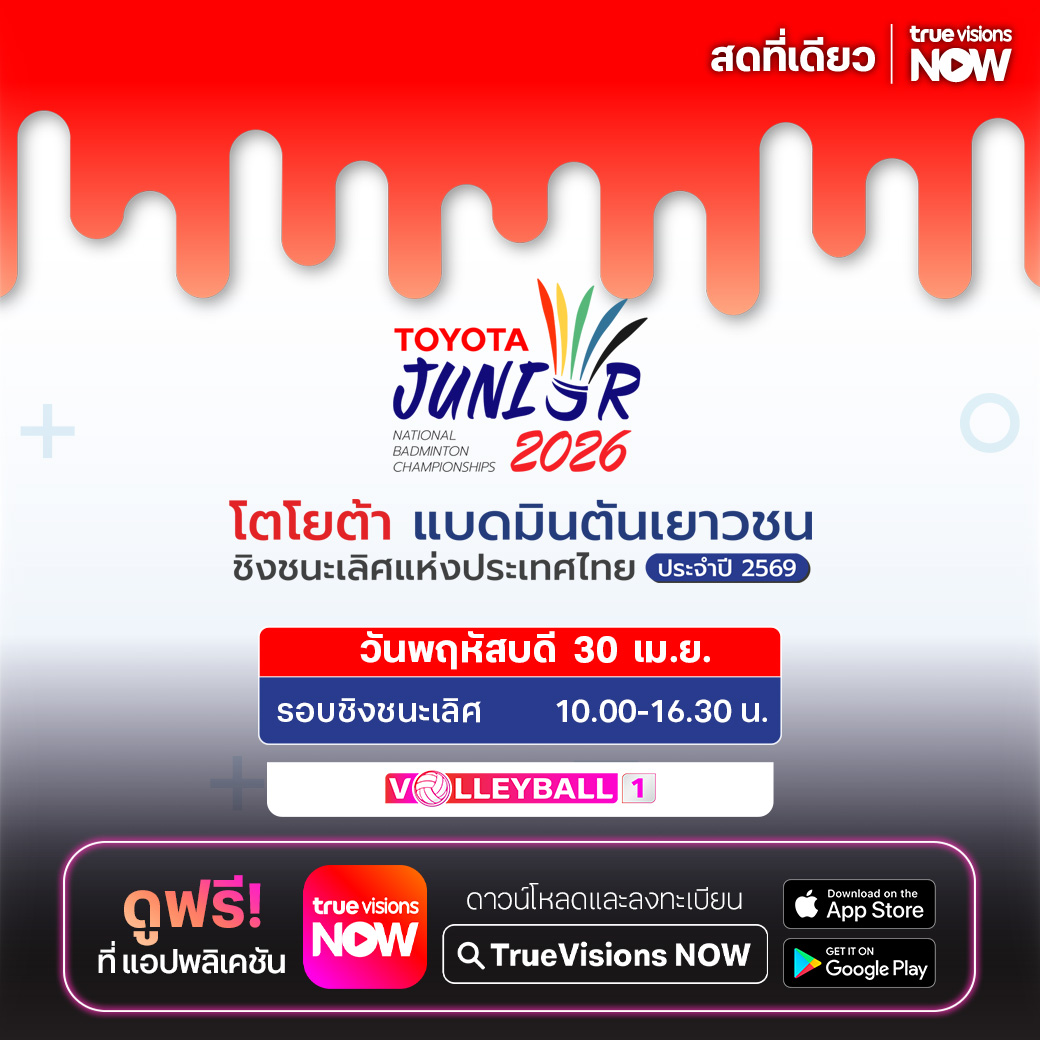 ศึกแห่งศักดิ์ศรีที่จะเป็นบันไดสู่การเป็นตัวแทนประเทศไทยในเวทีระดับนานาชาติและระดับอาชีพ สำหรับนักแบดมินตันดาวรุ่งอนาคตไกลของประเทศ ใครจะสมหวัง ใครจะได้ไปต่อ แฟนๆ ร่วมลุ้น ร่วมติดตามให้กำลังใจ ในการแข่งขัน แบดมินตัน เยาวชนชิงชนะเลิศแห่งปประเทศไทย ประจำปี 2569 ชมสด ในรอบรองชนะเลิศและรอบชิงชนะเลิศ ที่ ทรูวิชั่นส์