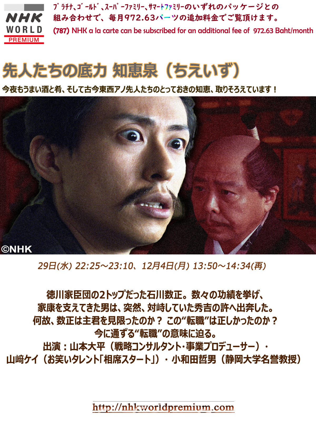 29th(Wed) 22:25-23:10, 12/4 (Mon)13:50–14:34 (R) - NHK World Premium (787)