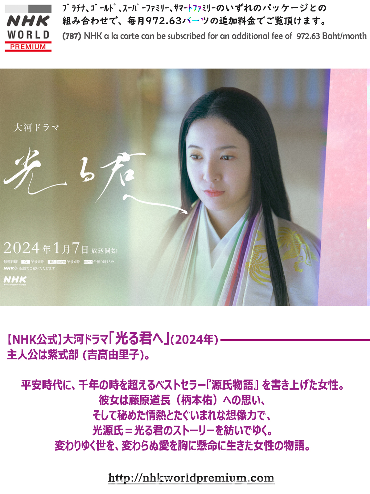 Sundays 18:00-18:44, Mondays 03:00-03:44(R) & Saturdays 13:05-13:49(R) - NHK World Premium (787)