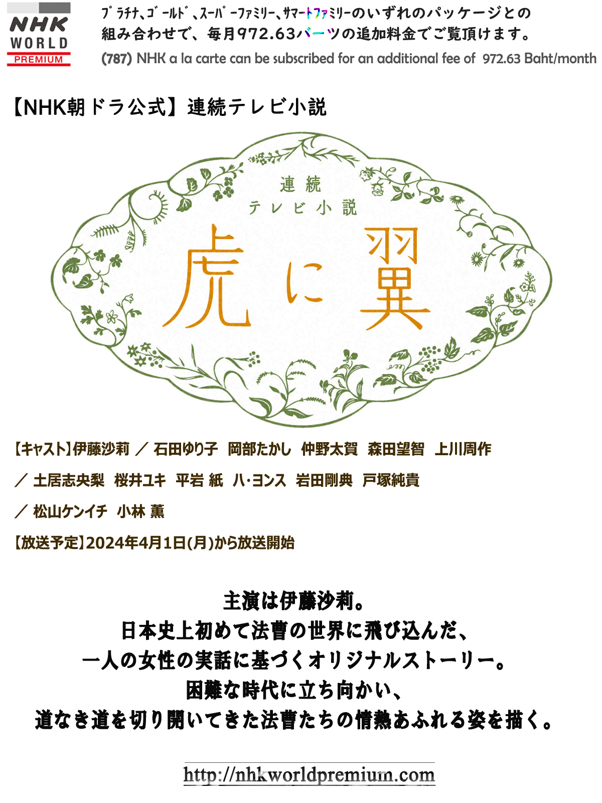 Start from Apr 1, 2024. Mondays-Saturdays 06:00-06:15 & 10:45-11:00(R) - NHK World Premium (787)