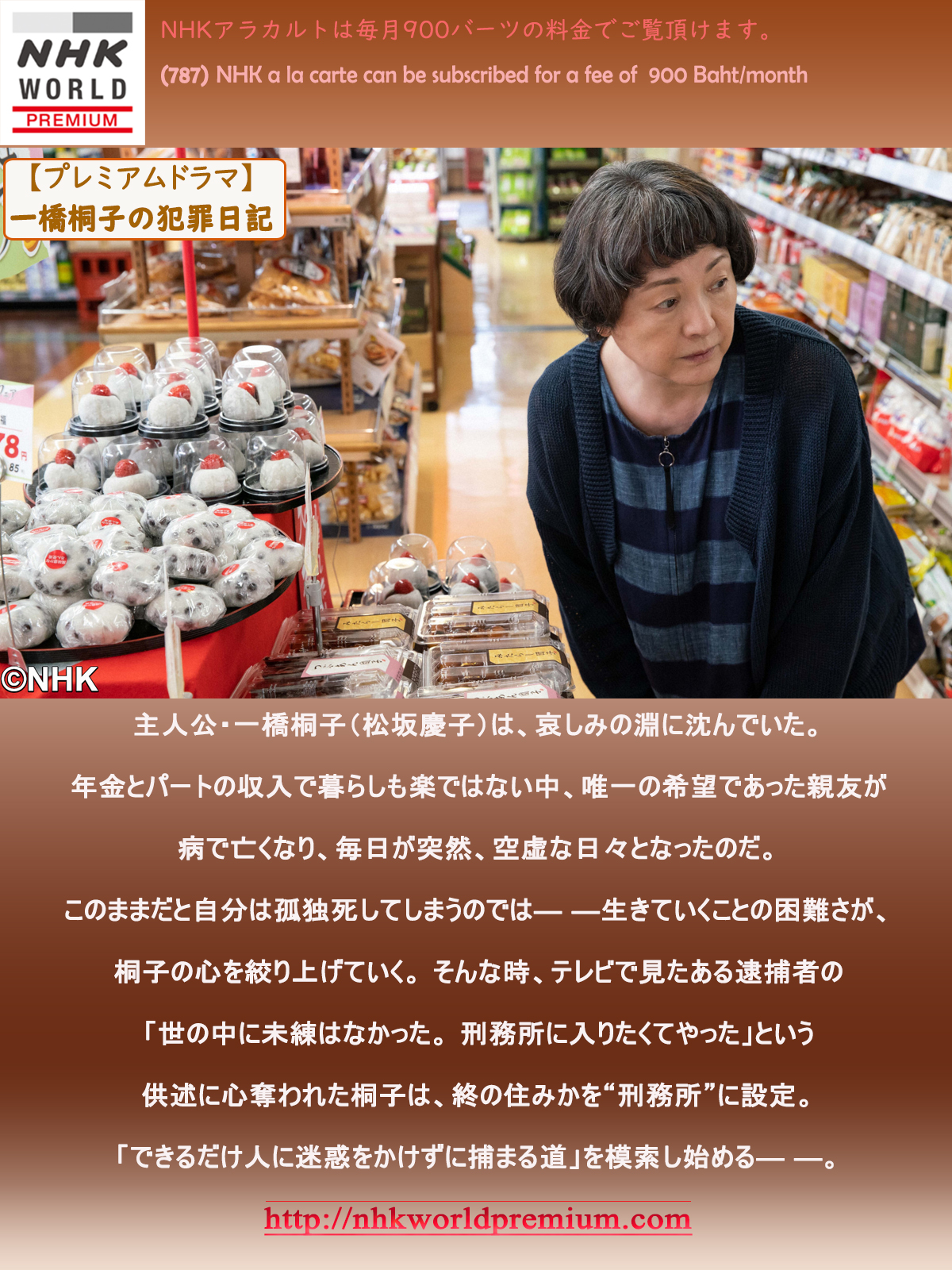 Hitotsubashi Kiriko (Matsuzaka Keiko) is in deep sorrow. While it was hard enough to making her life living on her pension and part-time income, she is struck with a sense of emptiness and despair after the death of her best friend from an illness. One day, Kiriko is inspired by the words of an arrestee she saw on TV, who said, "I have no regrets in my life, and I committed the crime only to go to prison,”. She sets prison as her final home and begins to search for ways to get arrested with the least amount of trouble caused to other people.
