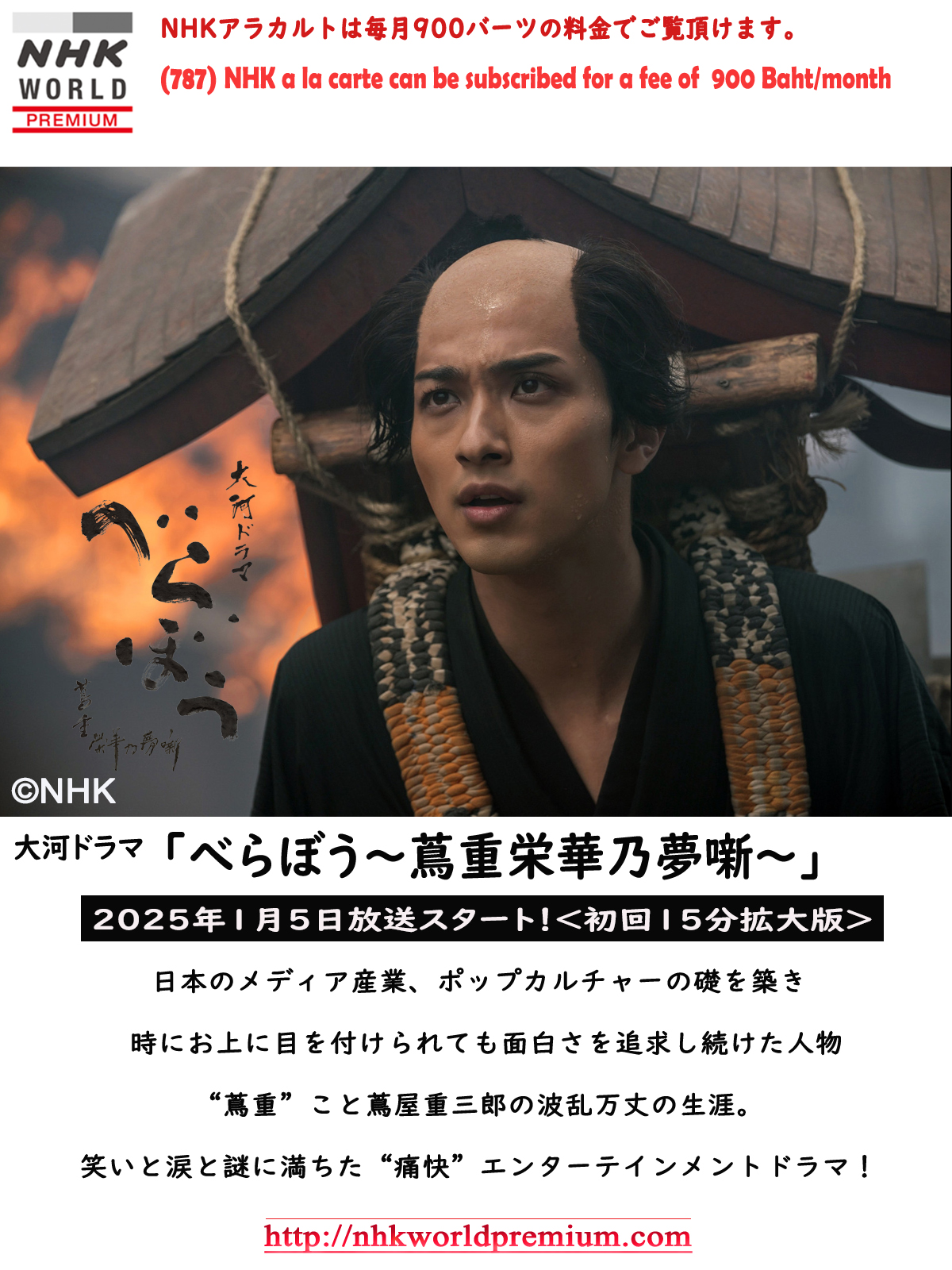 The story depicts the turbulent life of Tsutaya Juzaburo (Yokohama Ryusei), known as "Tsutaju", a man who laid the foundation for Japan’s media industry and pop culture. Despite the close scrutiny of the shogunate, he relentlessly pursued humor and entertainment. This thrilling drama is filled with laughter, tears, and mystery.