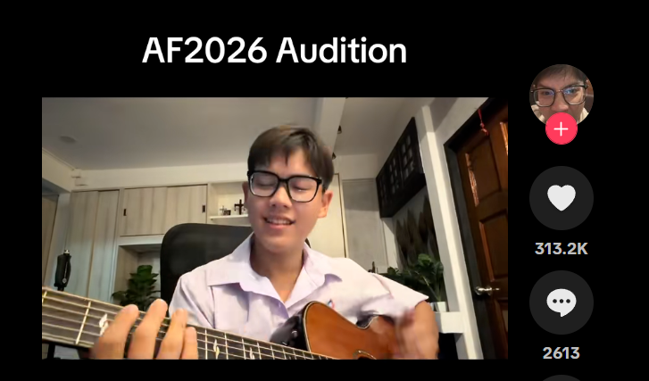 เริ่มต้นที่ Shane Augustin ศิลปินหน้าใหม่วัยเพียง 16 ปี นักเรียนชั้น ม.4 จากโรงเรียนสวนกุหลาบ ที่มาพร้อมความสามารถรอบด้าน ทั้งการร้องเพลง เล่นกีตาร์ แต่งเพลง รวมถึงโปรดิวซ์ผลงานของตัวเอง เขาเคยปล่อยเพลงเปิดตัวในชื่อ “Somebody” และยังมีผลงาน Cover ในช่อง YouTube ของตัวเองอีกหลายเพลง สำหรับคลิปออดิชั่น AF 2026 เขาเลือกเพลง “จักรวาลไหน” พร้อมโชว์สกิลร้องและเล่นกีตาร์อย่างโดดเด่น จนได้รับความสนใจจากผู้ชมบน TikTok อย่างรวดเร็ว ปัจจุบันมีผู้ติดตามกว่า 112.3K ยอดไลก์รวม 313.2K และคอมเมนต์มากกว่า 2,600 ครั้ง กลายเป็นอีกหนึ่งดาวรุ่งที่หลายคนเชื่อว่ามีอนาคตไกลบนเวทีดนตรี
