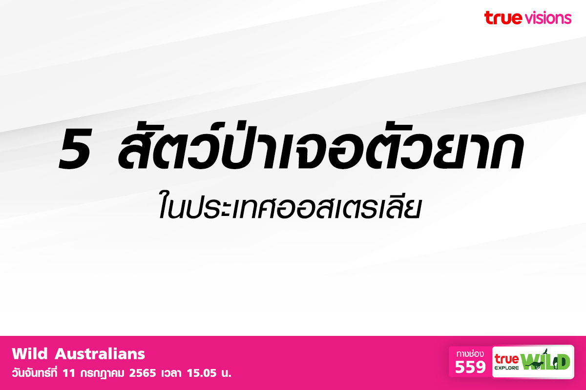 เรื่องราวของสัตว์ป่าใน "ออสเตรเลีย" ทวีปที่จัดได้ว่าเก่าแก่อีกหนึ่งทวีปในโลก มีความอุดมสมบรูณ์แบบขั้นสุด พื้นที่เป็นที่ราบ ทำให้มีสัตว์นานาชนิดอาศัยอยู่ ด้วยความที่มีความหลากหลายทางภูมิศาสตร์ทำให้ "ออสเตรเลีย" มีสัตว์ทั้งครึ่งบกครึ่งน้ำ สัตว์ป่าหน้าตาแปลกๆ ให้พบเห็นอยู่ ถึงตอนนี้เชื่อว่าหลายคนคงอยากจะติดตามชีวิตของสัตว์ต้องไม่พลาด "Wild Australians" เพราะจะพาทุกคนเข้าป่าพบสิ่งมีชีวิตสุดทึ่ง วันนี้ก่อนที่จะไปรับชมวันนี้เวลา 15.05 น. ทาง True Explore Wild ช่อง 559 ไม่พลาดที่จะเอาภาพสัตว์ 5 ชนิดในสารคดีมาให้ได้ติดตามกัน