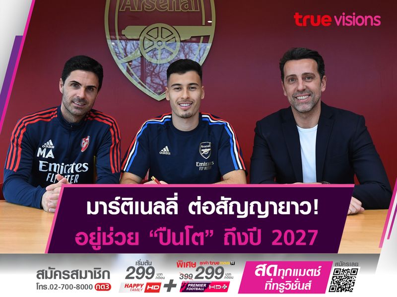 "เดอะ กันเนอร์ส" อาร์เซนอล จ่าฝูงฟอร์มเเรงของ พรีเมียร์ลีก อังกฤษ จัดการขยายสัญญา กาเบรียล มาร์ติเนลลี กองหน้าตัวเก่งชาวเเซมบ้า ออกไปจนถึงปี 2027 พร้อมเงื่อนไขขยายเพิ่มอีก 1 ปี หลังจากที่ เจ้าตัว ทำผลงานได้อย่างยอดเยี่ยมในฤดูกาลนี้ เเละมีส่วนสำคัญในการพาทีมลุ้นเเชมป์ พรีเมียร์ลีก