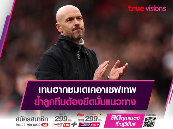 เอริค เทน ฮาก กุนซือของ แมนฯ ยูไนเต็ด กล่าวเตือนสติลูกทีมว่าต้องยึดมั่นในแนวทางของตัวเองหากไม่อยากโดนคู่แข่งลงโทษ พร้อมกับกล่าวชม ดาบิด เด เคอา นายทวารตัวเก่งที่ช่วยเซฟจนทำให้ทีมไม่ตกเป็นฝ่ายเสียเปรียบไปก่อน ในเกมพรีเมียร์ลีก อังกฤษ ที่ทีมปีศาจแดงเปิดบ้านถล่ม เลสเตอร์ ซิตี้ ไปขาดลอย 3-0 เมื่อวันอาทิตย์ที่ 19 กุมภาพันธ์ที่ผ่านมา