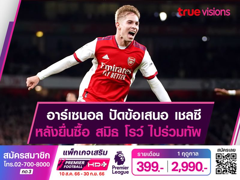"เดอะ กันเนอร์ส" อาร์เซน่อล ทีมแกร่งแห่ง พรีเมียร์ลีก อังกฤษ บอกปัดข้อเสนอของ "สิงห์บลูส์" เชลซี คู่ปรับร่วมกรุงลอนดอน ที่ยื่นเข้ามาเพื่อขอซื้อตัว เอมิล สมิธ โรว์ กองกลางตัวรุกชาวอังกฤษ เป็นที่เรียบร้อย