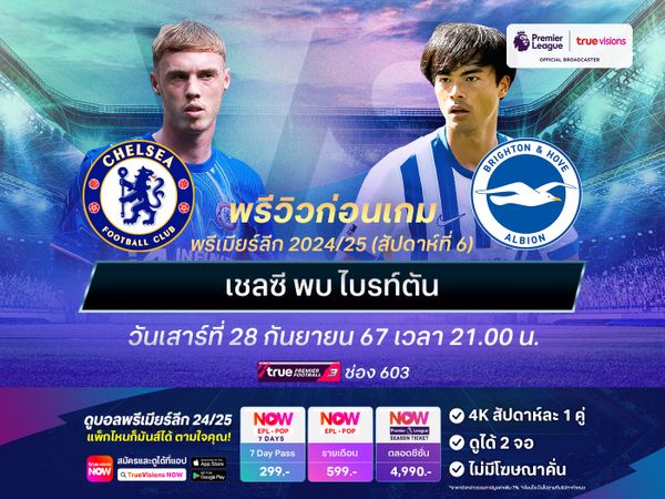ศึกพรีเมียร์ลีก อังกฤษ 2024-25 เชลซี จะเปิดรัง สแตมฟอร์ด บริดจ์ รับการมาเยือนของ ไบรท์ตัน โดยเกมนี้ เชลซี เจ้าถิ่น กำลังอยู่ในฟอร์มที่ยอดเยี่ยมสุดๆ หลังไม่แพ้ใครมา 4 เกมติดต่อกันแล้วในทุกรายการ และยังชนะมาตลอดใน 3 เกมหลังสุด ขณะที่ ไบรท์ตัน ยังไร้พ่ายในฤดูกาลนี้ก็จริง แต่ฟอร์มช่วงหลังแผ่วลงไปพอสมควร และเกมนี้ก็มีโอกาสไม่น้อยที่พวกเขาอาจจะต้องแพ้เป็นเกมแรกในฤดูกาลนี้