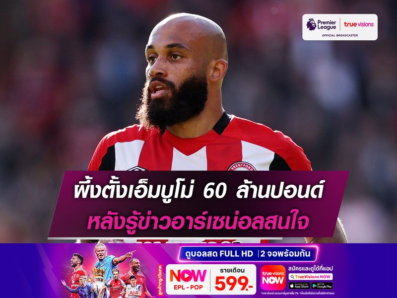 ฟุตบอล อินไซเดอร์ สื่อในอังกฤษรายงานว่า เบรนท์ฟอร์ด ตั้งราคาค่าตัวของ ไบรอัน เอ็มบูโม่ กองหน้าตัวเก่งของทีมเอาไว้สูงถึง 60 ล้านปอนด์ หลังมีข่าวลือว่า อาร์เซน่อล กำลังจับตามองกองหน้ารายนี้อยู่อย่างใกล้ชิด