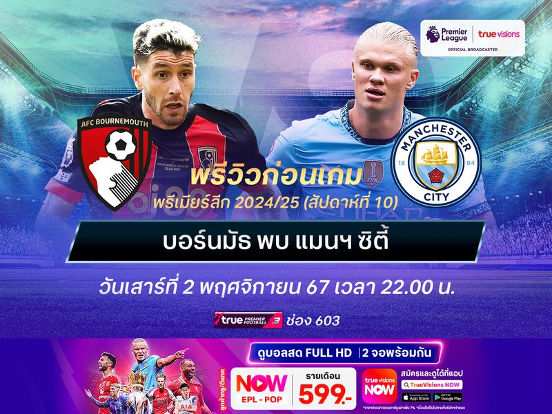 ศึกพรีเมียร์ลีก อังกฤษ 2024-25 บอร์นมัธ จะเปิดรัง วิทาลิตี้ สเตเดี้ยม รับการมาเยือนของ แมนฯ ซิตี้ โดยเกมนี้ บอร์นมัธ เจ้าถิ่น มีฟอร์มการเล่นที่ค่อนข้างน่าพอใจในช่วงที่ผ่านมา หลังไม่แพ้ในลีกมา 2 นัดติดต่อกันแล้ว และยังเก็บแต้มได้เรื่อยๆ โดยที่ไม่ต้องหล่นลงไปอยู่ในโซนท้ายตาราง ขณะที่ แมนฯ ซิตี้ ยังไม่แพ้ใครในลีก และเป็นทีมเดียวที่ยังรักษาสถิติไร้พ่าย เกมนี้พวกเขาหวังที่จะบุกมาเก็บ 3 แต้มเพื่อรักษาตำแหน่งจ่าฝูงเอาไว้ต่อไป