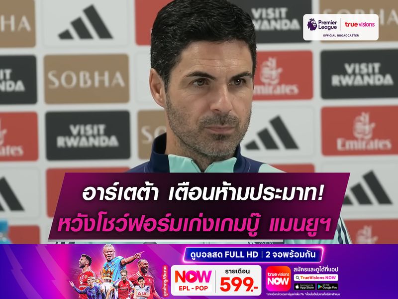 มิเกล อาร์เตต้า ผู้จัดการทีมฝีมือดีของ "เดอะ กันเนอร์ส" อาร์เซน่อล ทีมบิ๊กเนมแห่ง พรีเมียร์ลีก อังกฤษ ออกโรงเตือนลูกทีมห้ามประมาท "ปีศาจแดง" แมนเชสเตอร์ ยูไนเต็ด อย่างเด็ดขาด! ก่อนจะลงสนามดวลกันในเกม "บิ๊กแมตช์" คืนวันอาทิตย์ที่ 9 มีนาคมนี้