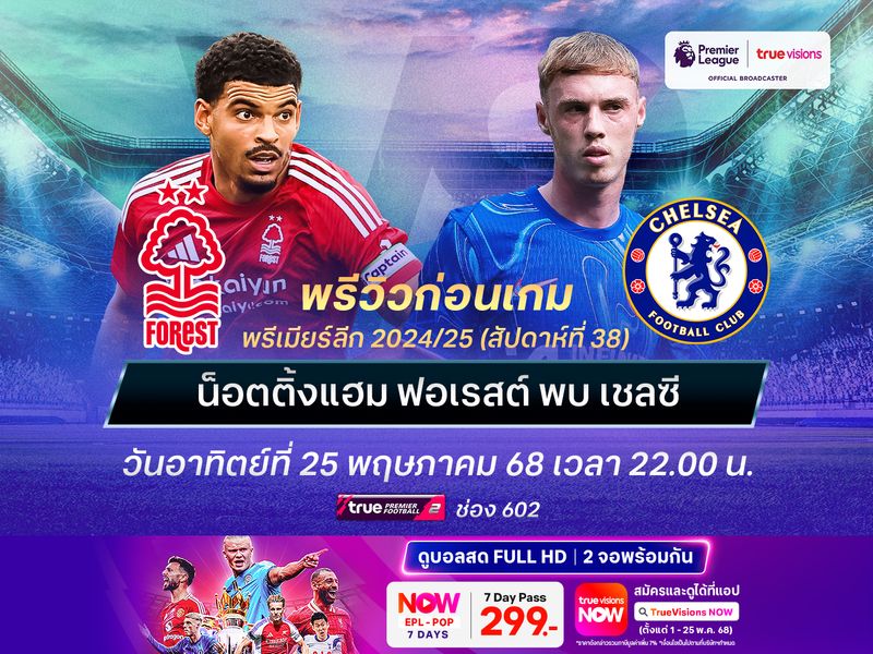 ศึกพรีเมียร์ลีก อังกฤษ 2024-25 น็อตติ้งแฮม ฟอเรสต์ จะเปิดรัง ซิตี้ กราวด์ รับการมาเยือนของ เชลซี โดยเกมนี้ ฟอเรสต์ เจ้าถิ่น ต้องการ 3 คะแนนสถานเดียว และต้องลุ้นผลคู่อื่นให้เข้าทางด้วย เพื่อมีลุ้นโควต้าไปเล่น แชมเปี้ยนส์ ลีก ในปีหน้า ขณะที่ เชลซี จะเล่นเพื่อเสมอก็อาจจะไม่เพียงพอเช่นกัน เพราะยังมีสิทธิ์ถูก แอสตัน วิลล่า แซง ทำให้เกมนี้จะเป็นเกมที่เปิดแลกกันสนุก ใครชนะในเกมนี้น่าจะวัดกันที่เกมรุกว่าใครจะใช้โอกาสได้เปลืองน้อยกว่ากัน