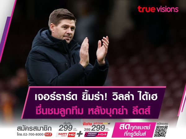 สตีเว่น เจอร์ราร์ด ผู้จัดการทีมสายบู๊ของ "สิงห์ผงาด" แอสตัน วิลล่า ทีมมีชื่อเเห่ง พรีเมียร์ลีก อังกฤษ ออกโรงชื่นชมผลงานของลูกทีมทุกคน หลังจากบุกไปถล่ม "ยูงทอง" ลีดส์ ยูไนเต็ด ได้เเบบขาดลอย 3-0 เมื่อช่วงดึกที่ผ่านมา(10 มีนาคม)