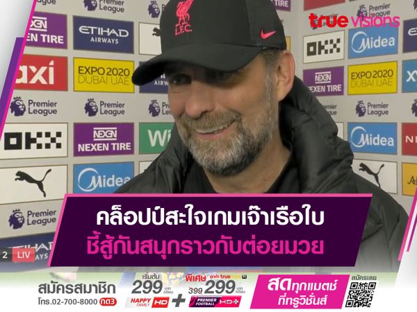 เจอร์เก้น คล็อปป์ กุนซือของ ลิเวอร์พูล ยอมรับว่ารู้สึกสนุกทุกครั้งที่ได้ดวลกับ แมนฯ ซิตี้ พร้อมกับชี้ว่าไม่ต่างอะไรกับการขึ้นชกบนเวทีของกีฬาต่อยมวย หลังเกมที่หงส์แดงบุกมายันเสมอกับเรือใบสีฟ้า 2-2 ในเกมพรีเมียร์ลีก อังกฤษ เมื่อวันอาทิตย์ที่ผ่านมา