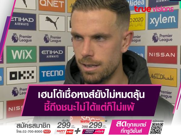จอร์แดน เฮนเดอร์สัน กองกลางกัปตันทีม ลิเวอร์พูล เชื่อมั้นว่าต้นสังกัดของตนเองยังไม่หมดลุ้นแชมป์พรีเมียร์ลีก แม้ว่าจะทำได้แค่บุกมาเสมอกับ แมนฯ ซิตี้ 2-2 ในเกมพรีเมียร์ลีก อังกฤษ นัดบิ๊กแมตช์เมื่อวันอาทิตย์ที่ผ่านมา โดยชี้ว่าถึงทีมจะไม่ชนะ แต่ก็ไม่ได้แพ้เช่นกัน