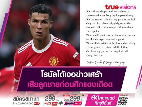 คริสเตียโน่ โรนัลโด้ กองหน้าตัวเก่งของ แมนฯ ยูไนเต็ด ต้องเจอกับข่าวร้ายก่อนศึกวันแดงเดือด ที่ทีมปีศาจแดงมีโปรแกรมไปเยือน ลิเวอร์พูล ในเกมพรีเมียร์ลีก อังกฤษ นัดสำคัญในคืนวันอังคารนี้ เมื่อเขาต้องเสียลูกชายซึ่งเป็นหนึ่งในฝาแฝดชายหญิงไป หลังจากที่ จอร์จิน่า โรดริเกซ แฟนสาวเพิ่งจะมีกำหนดคลอดไปเมื่อวันจันทร์ที่ผ่านมา