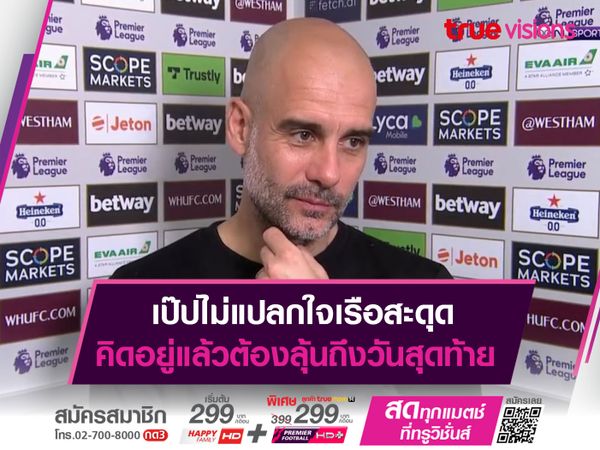 เป๊ป กวาร์ดิโอล่า กุนซือของ แมนฯ ซิตี้ เปิดเผยหลังเกมพรีเมียร์ลีก อังกฤษ ที่ทีมเรือใบสีฟ้า ทำได้เพียงบุกเสมอกับ เวสต์แฮม ยูไนเต็ด 2-2 เมื่อวันอาทิตย์ที่ผ่านมา โดยยืนยันว่าคิดไว้อยู่แล้วว่าต้องลุ้นแชมป์จนถึงวันสุดท้ายของฤดูกาล