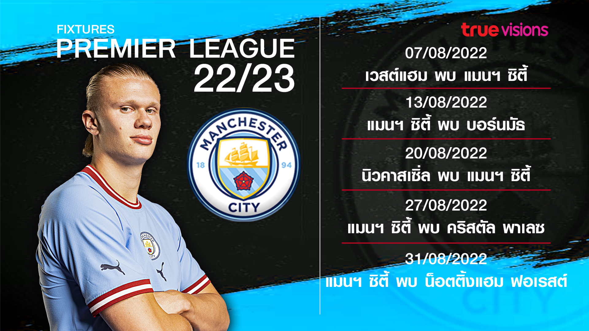 [โปรแกรมพรีเมียร์ลีก 2022-23 ทั้ง 38 นัดของ แมนฯ ซิตี้]