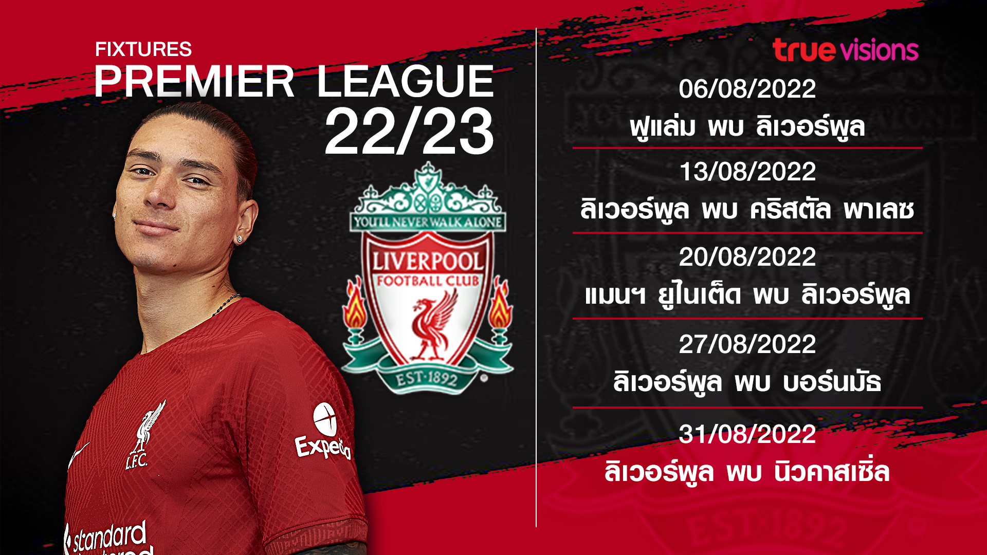 [โปรแกรมพรีเมียร์ลีก 2022-23 ทั้ง 38 นัดของ ลิเวอร์พูล]