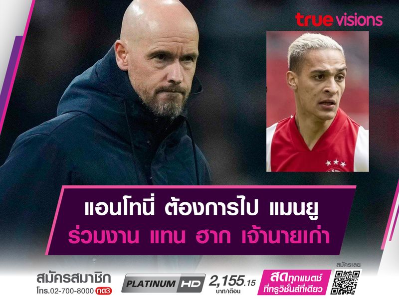 แอนโทนี่ แนวรุกสัญชาติบราซิล ของอาแจ็กซ์ อัมสเตอร์ดัม ตกเป็นข่าวว่ามีความต้องการอยากที่จะย้ายไปร่วมงานกับนายเก่าอย่าง เอริค เทน ฮาก ที่ แมนเชสเตอร์ ยูไนเต็ด