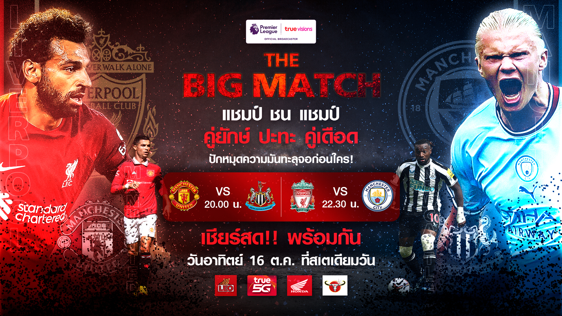 True Visions เจ้าของลิขสิทธ์ถ่ายทอดสด พรีเมียร์ลีก อังกฤษ หนึ่งเดียวของประเทศไทย! เอาใจแฟนฟุตบอลด้วยการจัดกิจกรรมพิเศษ "The Big Match" ร่วมชมการเเข่งขัน 2 เกมสุดมันส์ระหว่าง แมนเชสเตอร์ ยูไนเต็ด พบกับ นิวคาสเซิล ยูไนเต็ด เเละ ลิเวอร์พูล ปะทะ แมนเชสเตอร์ ซิตี้ บนจอขนาดยักษ์ ณ ใจกลางเมืองกรุงเทพมหานครฯ