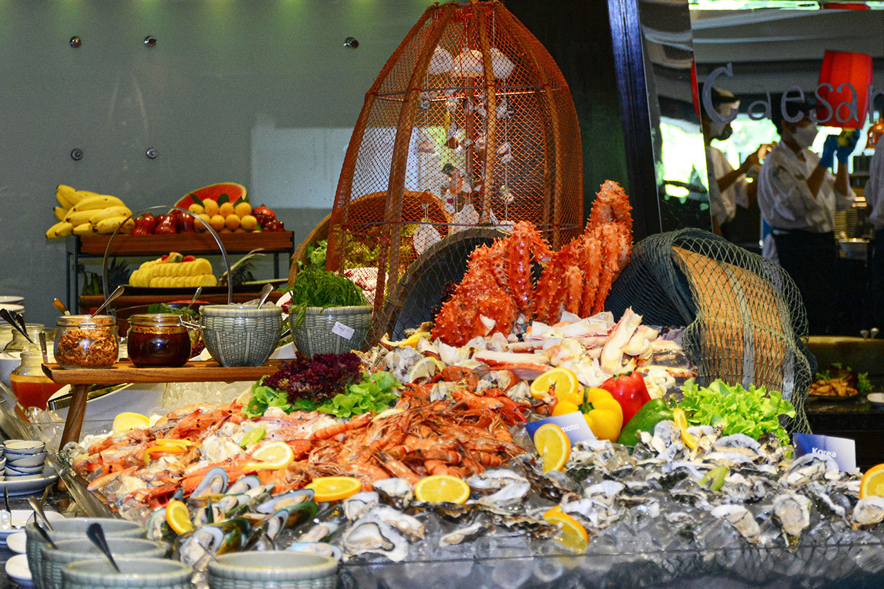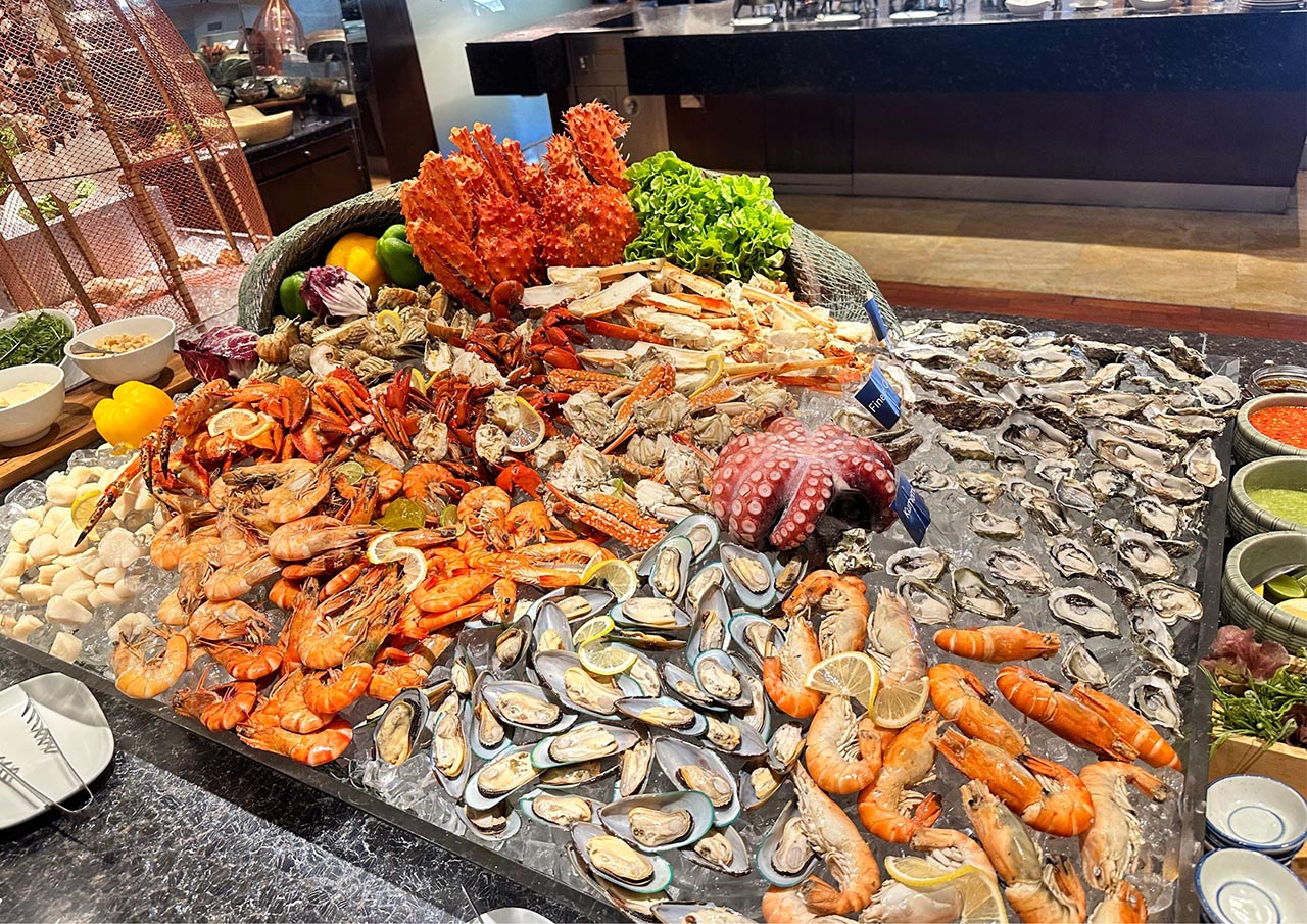 พบกับมุมแรกที่เป็น ซีฟู้ดออนไอซ์ เสิร์ฟเย็นพร้อมความสดของรสชาติอาหารที่คุณโปรดปราน อาทิ กุ้งชนิดต่างๆ กั้ง ขาปูอลากก้า ปูม้า ปลาหมึก หอยนางรมสดๆ นานาชนิด หอยแมลงภู่นิวซีแลนด์ พร้อมเครื่องเคียงน้ำจิ้มให้เลือกรับประทาน และยังมีสลัดผักสดใหม่พร้อม dressing มากมายตามชอบ