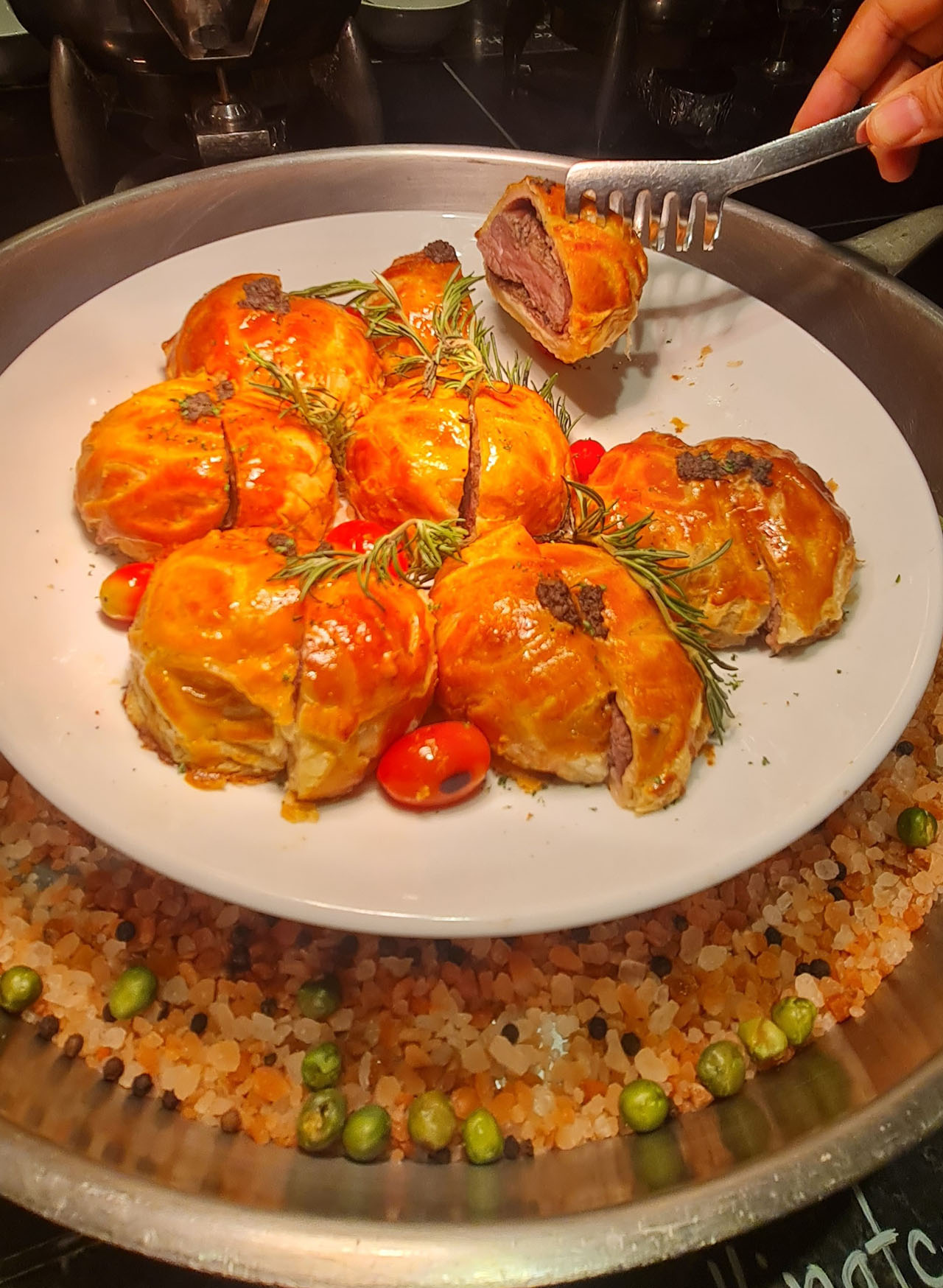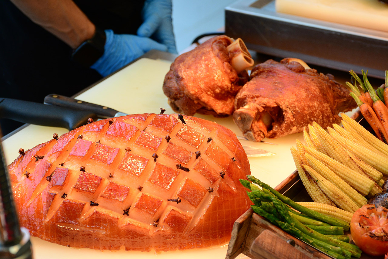 ในส่วนของเมนูปรุงสำเร็จก็มีหลากหลาย อย่างเช่น Lobster Thermidor กับ Coq au vin blanc ไก่ตุ๋นไวน์แดง สัญชาติฝรั่งเศส Beef Wellington เนื้อสเต็กอบในแป้งพัฟพาสตรี้สัญชาติอังกฤษ ปูผัดผงกะหรี่ หรือ กั้งผัดกระเทียมพริกไทยดำ อีกทั้ง เนื้อออสเตเรียริบอายส์ แฮมอบน้ำผึ้ง ขาหมูเยอรมันกรุบกรอบ เป็ดย่าง และปลาเผาตัวโตๆ จาก carving station