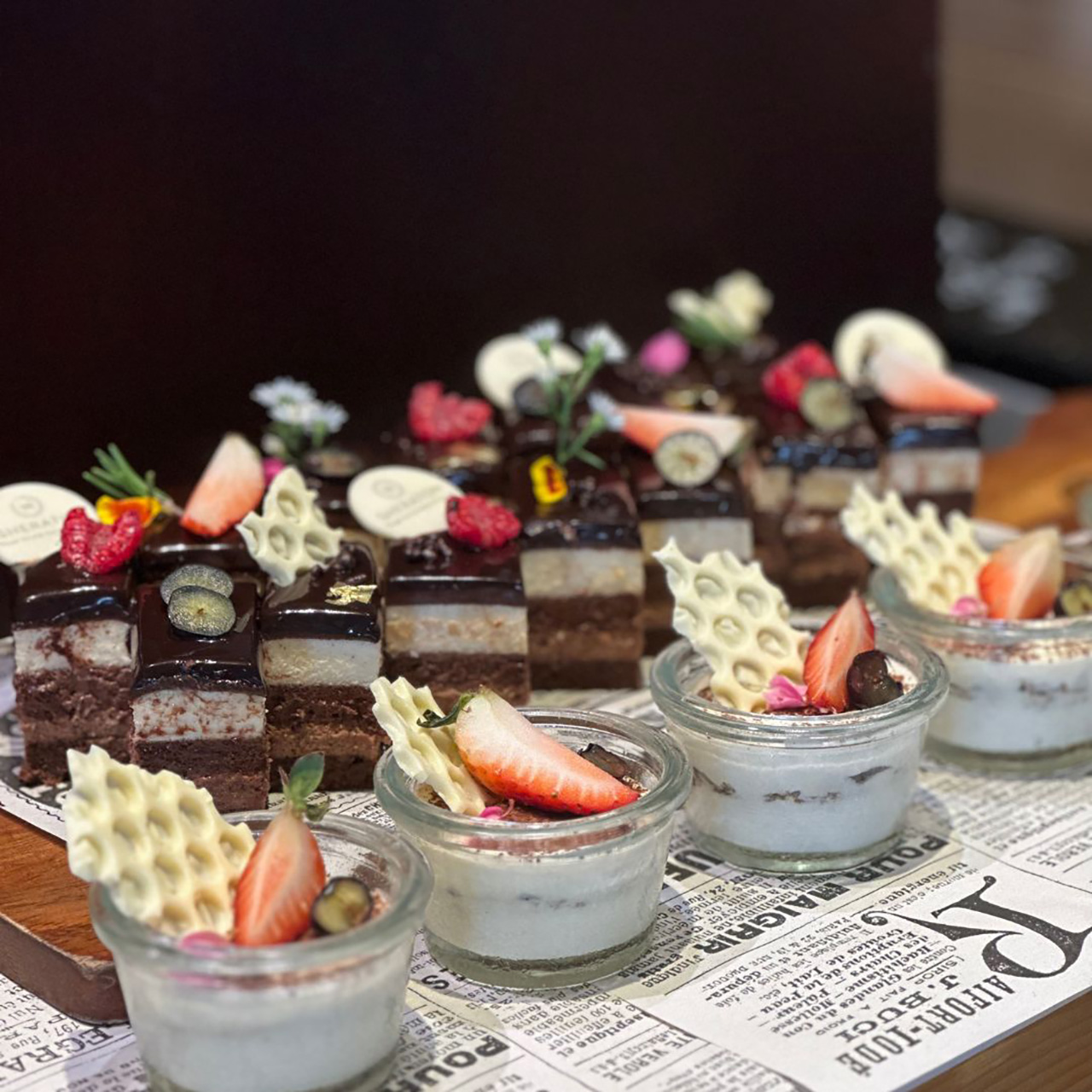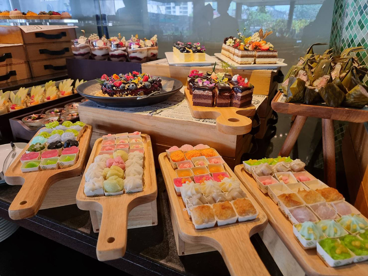 ปิดท้ายความอร่อยของมื้อสายวันอาทิตย์กันด้วยมุมขนมหวานแสนอร่อยที่เชฟจัดมาแบบโหลดๆ ประเภทเค้กได้แก่ แบลกฟอเรส ท้อฟฟี่เค้ก ฟรุตเค้ก บูลเบอร์รี่ สตรอเบอร์รี่ชีสเค้ก คัสตาร์ดคาราเมล พร้อมด้วยชอกโกแลต ฟองดู ที่มีทั้งผลไม้สด มาร์ชเมลโล่ เครปใส่ไส้หลากหลายให้เลือก ไอศกรีมรสชาติต่างๆ ที่มาพร้อมท้อปปิ้งมากมายและกรวยวาฟเฟิลสดใหม่ อีกทั้งข้าวเหนียวมะม่วง ขนมไทยและผลไม้สดๆ อีกมากมาย