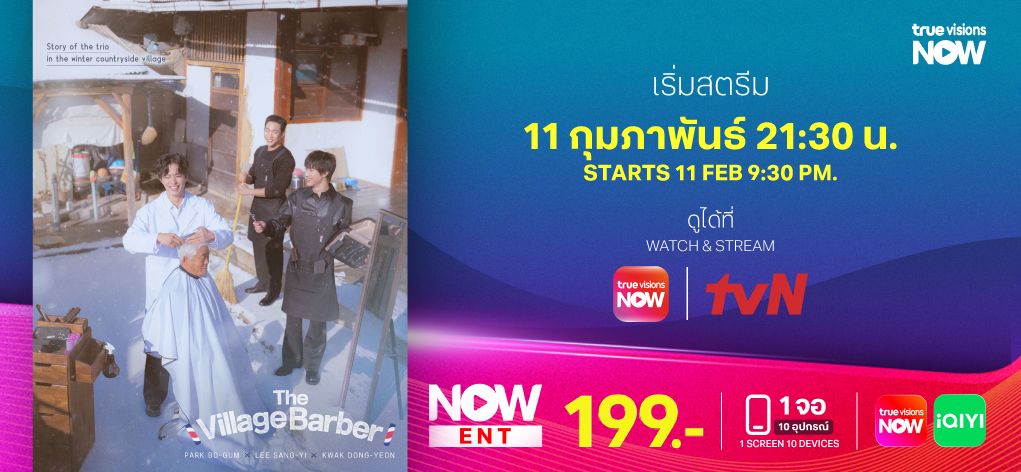 เริ่มสตรีมวันเสาร์ที่ 20 ธันวาคม 13.00 น. ที่แอปทรูวิชั่นส์ นาว แพ็กเกจ NOW ENT เริ่มต้นเพียง 99 บาทต่อเดือน
