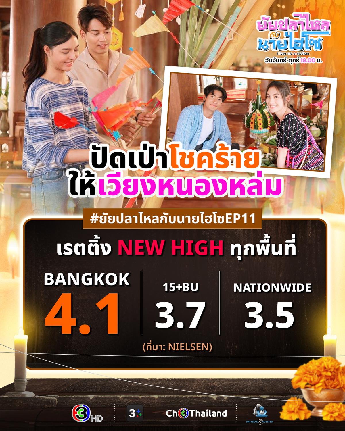 ภารกิจสำเร็จด้วยดีนำพาเรตติ้ง #ยัยปลาไหลกับนายไฮโซEP11 ฟาดนิวไฮทุกพื้นที่ โดยเรตติ้งกลุ่มผู้ชมกรุงเทพฯ สูงถึง 4.1 ทางด้านกลุ่มผู้ชมอายุ 15 ปี ขึ้นไป หรือ กลุ่ม 15 BU+ (Bangkok and Urban) ได้ไป 3.7 และเรตติ้งทั่วประเทศแรงทะลุ 3.5