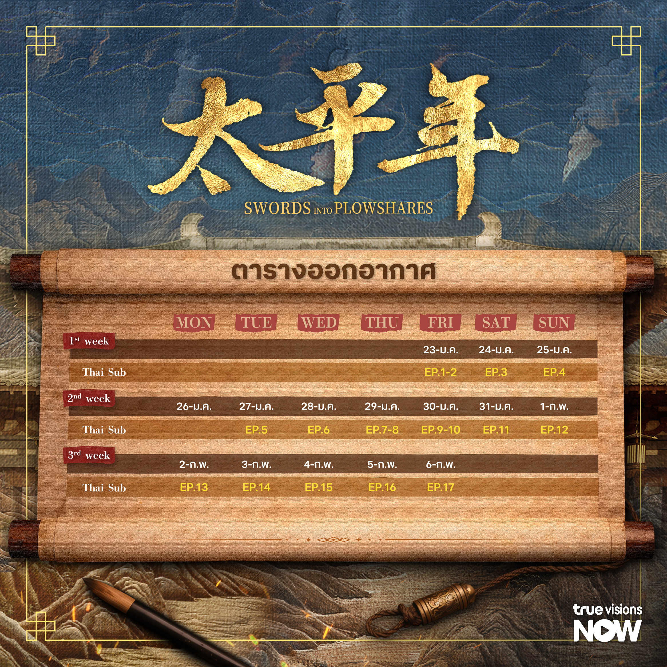 สัมผัสกับความยิ่งใหญ่ของซีรีส์ฟอร์มยักษ์แห่งปี “คมดาบสยบพิภพ” (Swords into Plowshares) เริ่มสตรีม 2 ตอนแรกพร้อมจีน 23 มกราคมนี้ 20.00 น. ที่แอปทรูวิชั่นส์ นาว (เนื่องจากซีรีส์ออกอากาศพร้อมประเทศจีน เพื่อควบคุมคุณภาพให้ดีที่สุด จึงอาจเกิดความล่าช้าในการออกอากาศสำหรับบางตอน)