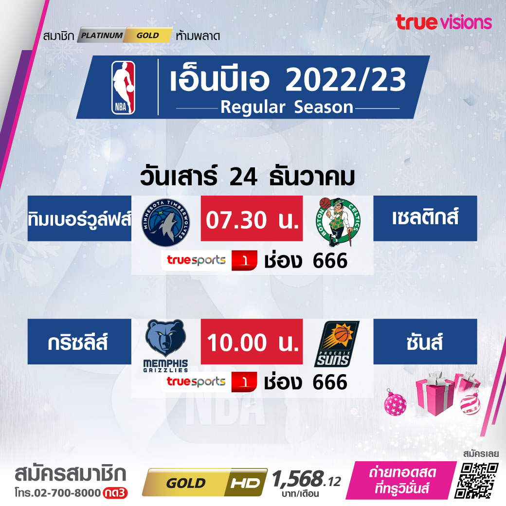 การถ่ายทอดสด เกมแรกประจำฤดูกาล 2022/23 เริ่มกันใน วันเสาร์ที่ 24 ธันวาคม 2565 เวลา 07.30 น.เป็นการพบกันระหว่าง มินนิโซตา ทิมเบอร์วูล์ฟส์ และ บอสตัน เซลติกส์ ตามมาด้วย เมมฟิส กริซลีส์ พบ ฟีนิกซ์ ซันส์ ในเวลา 10.00 น.