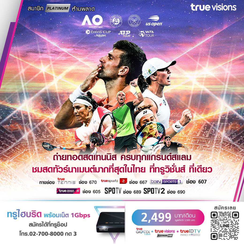 ทรูวิชั่นส์ ที่เดียว !! ส่งตรงทุกการแข่งขัน “เทนนิส” จัดเต็ม เอาใจนักหวดลูกสักหลาด
