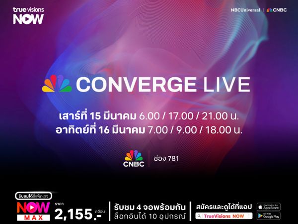 ร่วมสัมผัสประสบการณ์ เก็บเกี่ยวเอาความรู้และวิสัยทัศน์อันล้ำค่าเพื่อนำไปต่อยอดธุรกิจ การลงทุนของตัวคุณเองได้พร้อมกัน กับรายการ CONVERGE LIVE ออกอากาศวันเสาร์ที่ 15 มีนาคม เวลา 6.00, 17.00 และ 21.00 น. และวันอาทิตย์ที่ 16 มีนาคม เวลา 7.00, 9.00 และ 18.00 น. ทางช่อง CNBC (781) และแอปทรูวิชั่นส์ นาว