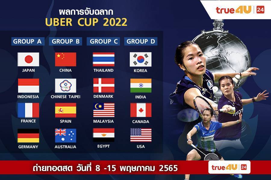 ทรูโฟร์ยู ช่อง 24 จัดเต็มความมันส์ ยิงสดทีมไทยลุยศึกแบดมินตัน โธมัส - อูเบอร์ คัพ 2022