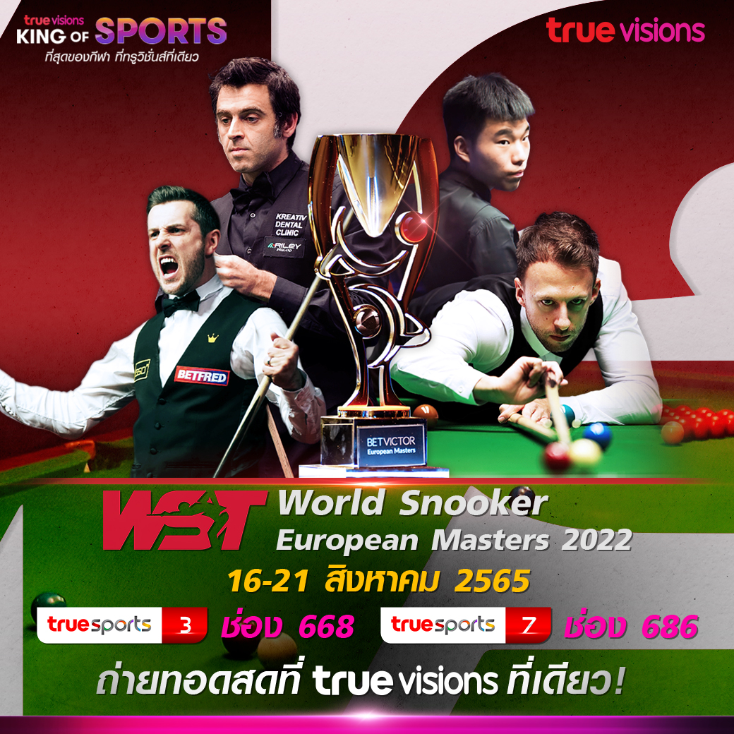 โปรแกรม ถ่ายทอดสด เวิลด์ สนุกเกอร์ ยูโรเปียน มาสเตอร์ส 2022 ทางทรูสปอร์ต 3 (668) และ ทรูสปอร์ต 7(686)