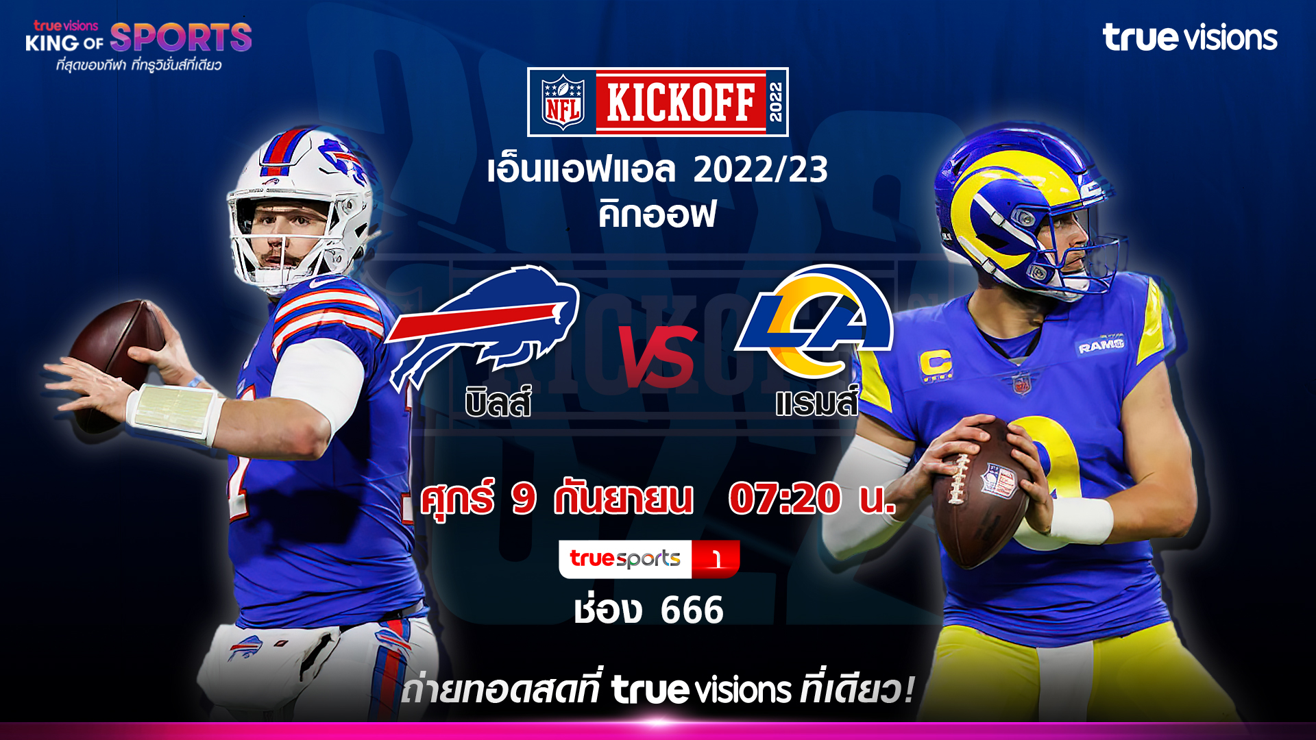 ทรูวิชั่นส์ คิง ออฟ สปอร์ต ตอกย้ำการเป็นผู้นำคอนเทนต์กีฬาระดับโลก พร้อมโปรแกรมสุดยิ่งใหญ่ของศึกอเมริกันฟุตบอล เอ็นเอฟแอล กีฬาอันดับหนึ่งของชาวอเมริกัน เปิดฤดูกาลวันแรกวันศุกร์ที่ 9 กันยายน นี้ ระหว่าง บัฟฟาโล บิลส์ ทีมเต็งหนึ่ง ออกไปเยือน ลอสแอนเจลิส แรมส์ แชมป์เก่า สดจากสนาม โซไฟ สเตเดียม (So-Fi Stadium) เมืองลอส แอนเจลิส รัฐแคลิฟอร์เนีย เวลา 07.20 น. ทางช่องทรูสปอร์ต 1 (666) และ ทรูสปอร์ต (667) ถ่ายทอดสดเต็มอิ่มตลอดฤดูกาล ไปจนสู่ช่วงรอบเพลย์ออฟ และศึกซุปเปอร์โบวล์ ในช่วงต้นปีหน้า