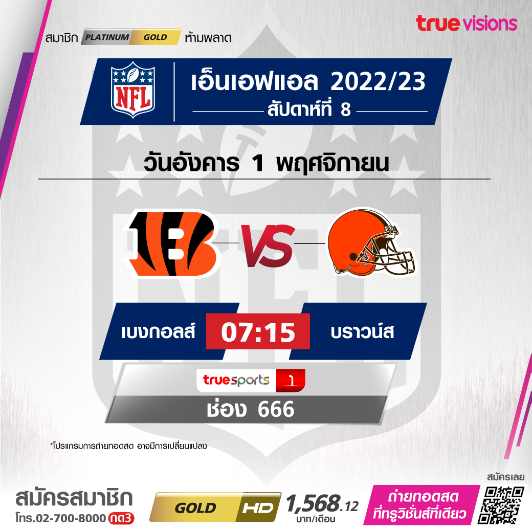 วันอังคาร 1 Bengals vs. Browns เวลา 07.15-10.30 ทางช่อง TS1 (666)